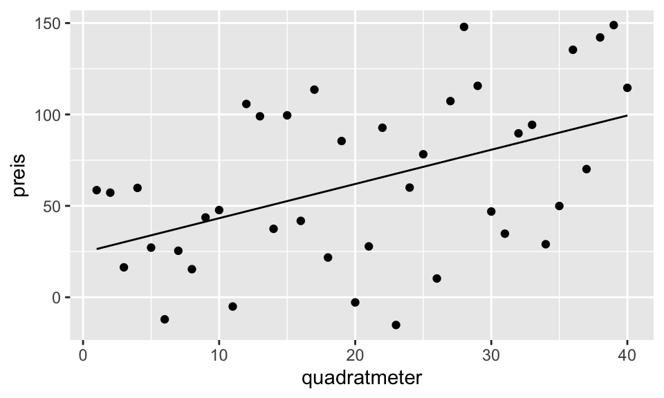 Regression Nummer 1 mit \(\text{medv} = \beta_1 + \beta_2 \cdot \text{lstat}\)