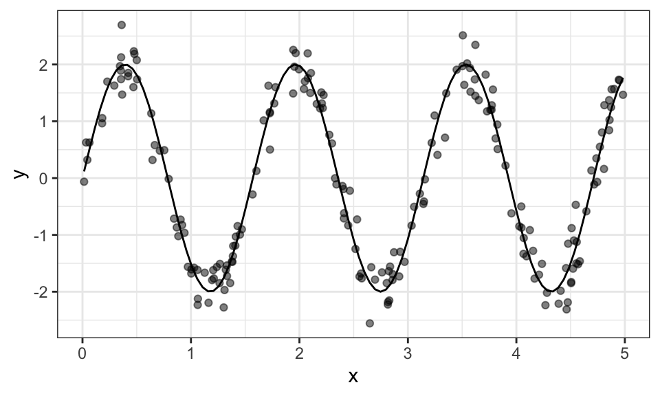 y <- 2 + 4*x + rnorm(n, mean = 0, sd = 2)