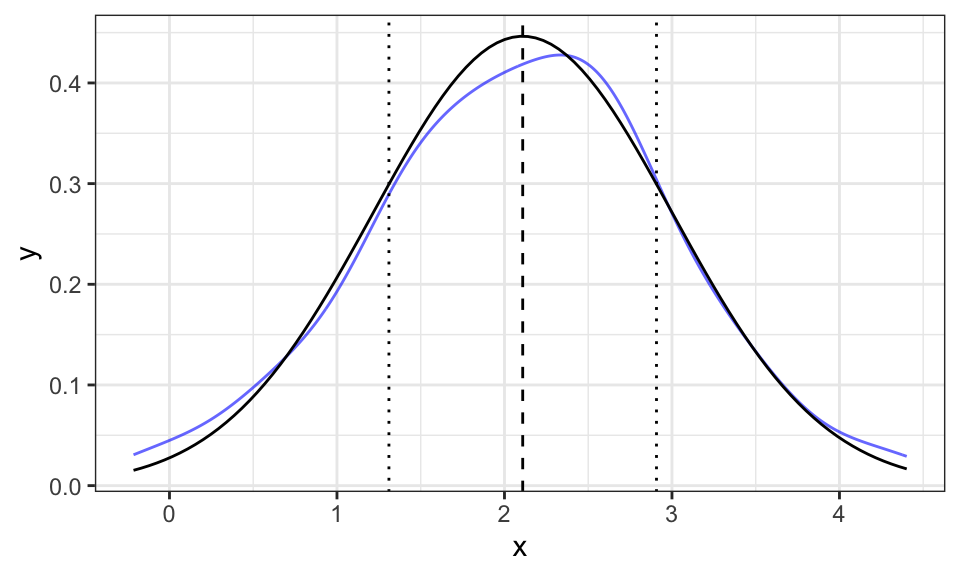 "\nVarianz (2. zentriertes Moment) =", round(m2, 2), "\n")Erwartungswert (1. Moment) = 2.11